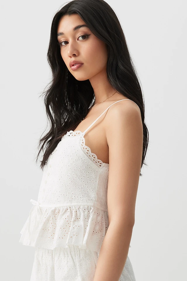 Ardene Button Front Eyelet Tank Top in White | Size | 100% Cotton