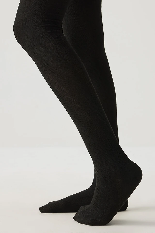 Ardene Cable Knit Tights in Black | Size Small | Nylon/Spandex