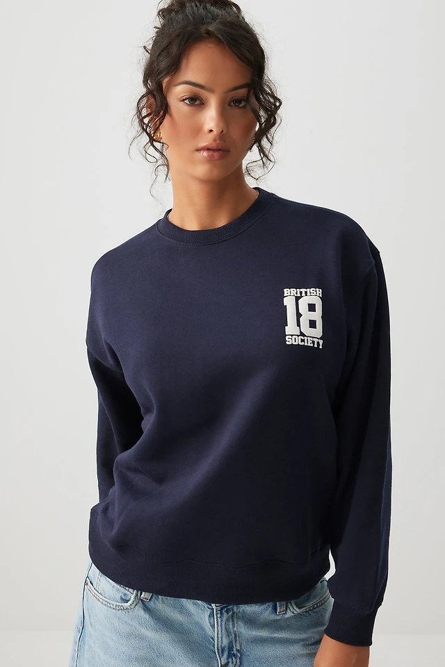 Ardene Cambridge Sweatshirt in Dark Blue | Size | Polyester/Cotton | Fleece-Lined