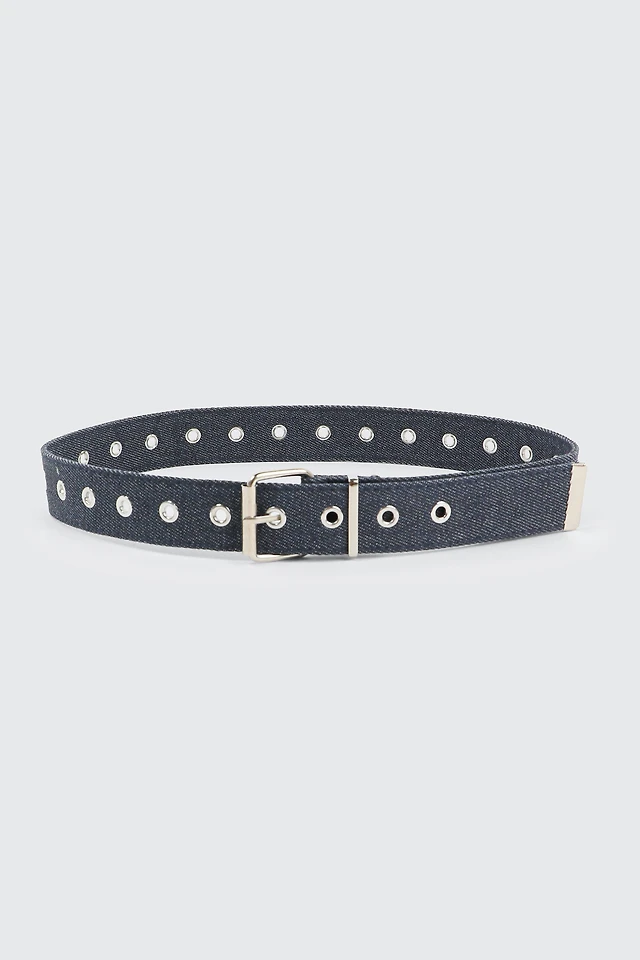Ardene Canvas Eyelet Belt in Dark Blue | Size Small | Polyester