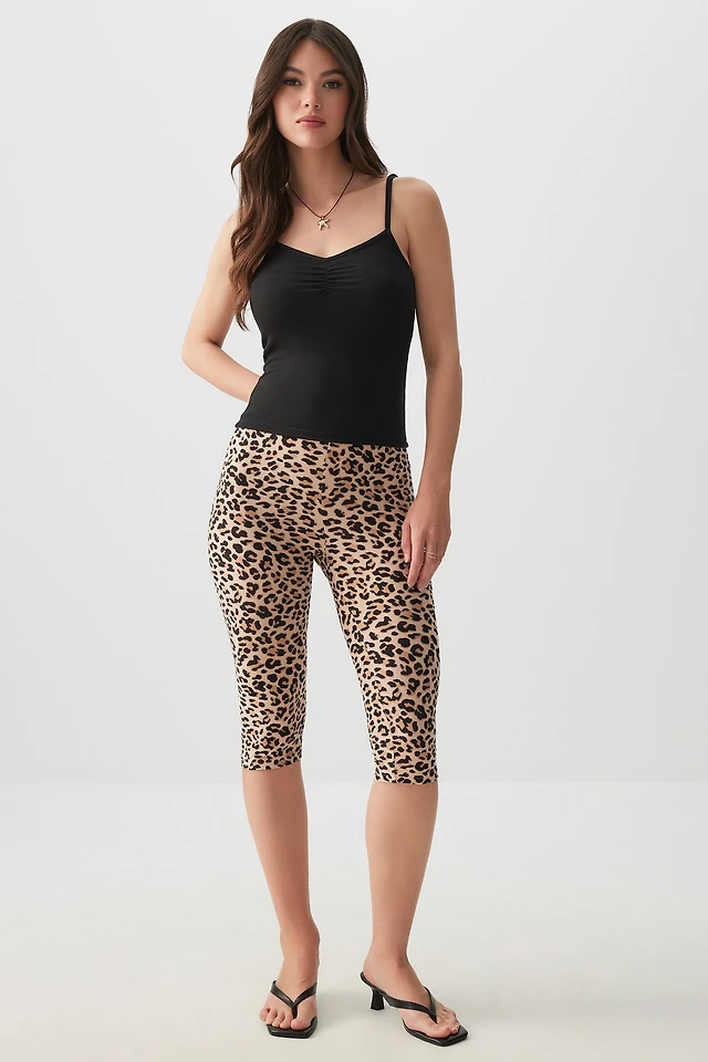 Ardene Capri Leggings with Rosette Detail in Beige | Size | Polyester/Spandex