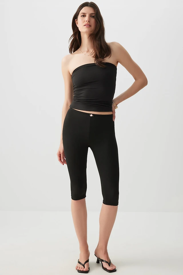 Ardene Capri Leggings with Rosette Detail in Black | Size | Polyester/Spandex