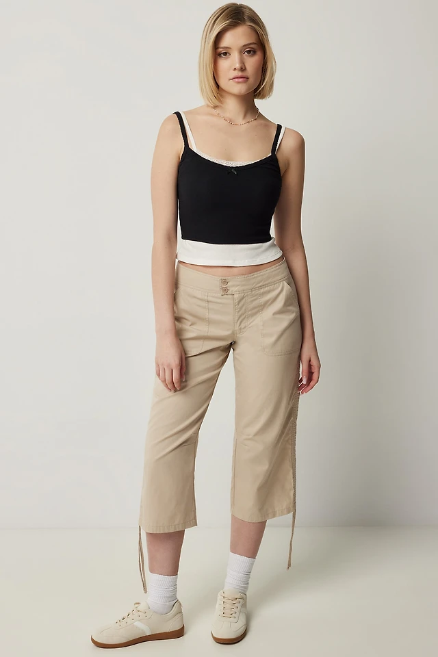 Ardene Capri Pants with Adjustable Cuffs in Beige | Size | Polyester/Cotton