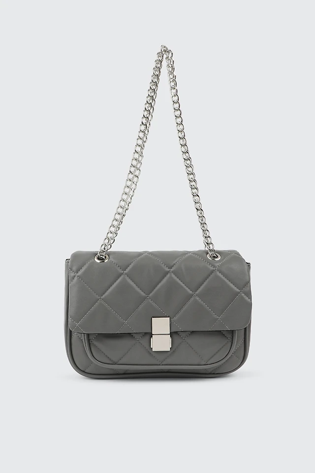 Ardene Chain Strap Quilted Bag in Grey | 100% Recycled Polyester/Faux Leather | Eco-Conscious