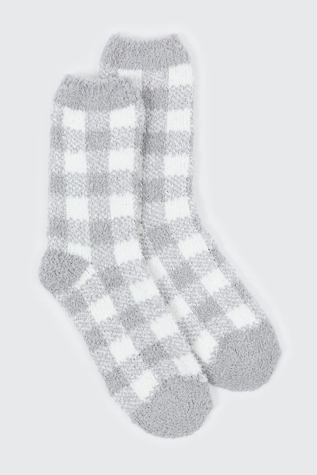 Ardene Checkerboard Cozy Socks in Grey | Polyester/Spandex