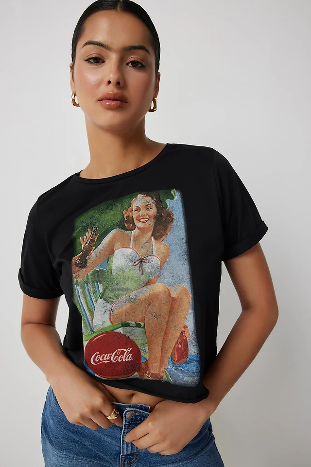 Ardene Coke Poster Boxy T-Shirt in Black | Size