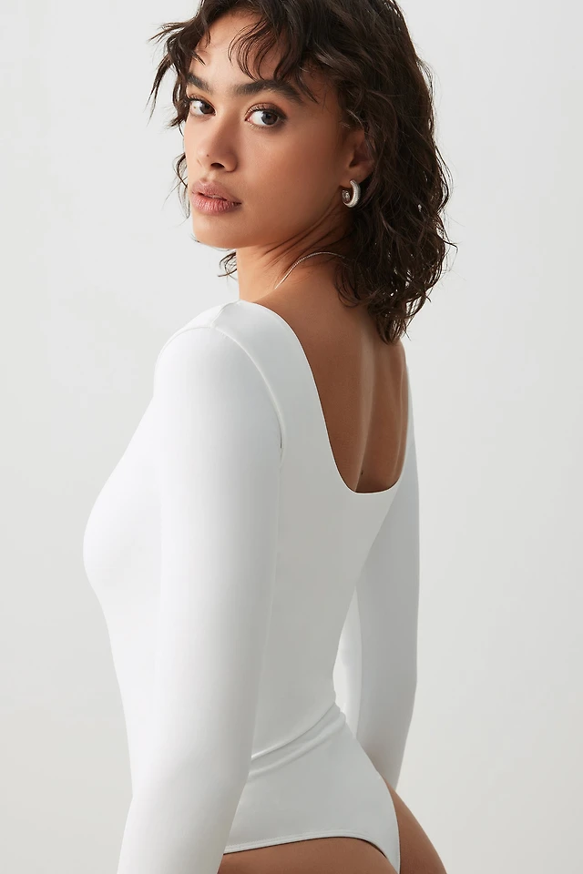Ardene Contour Long Sleeve Bodysuit in White | Size | Elastane/Polyamide