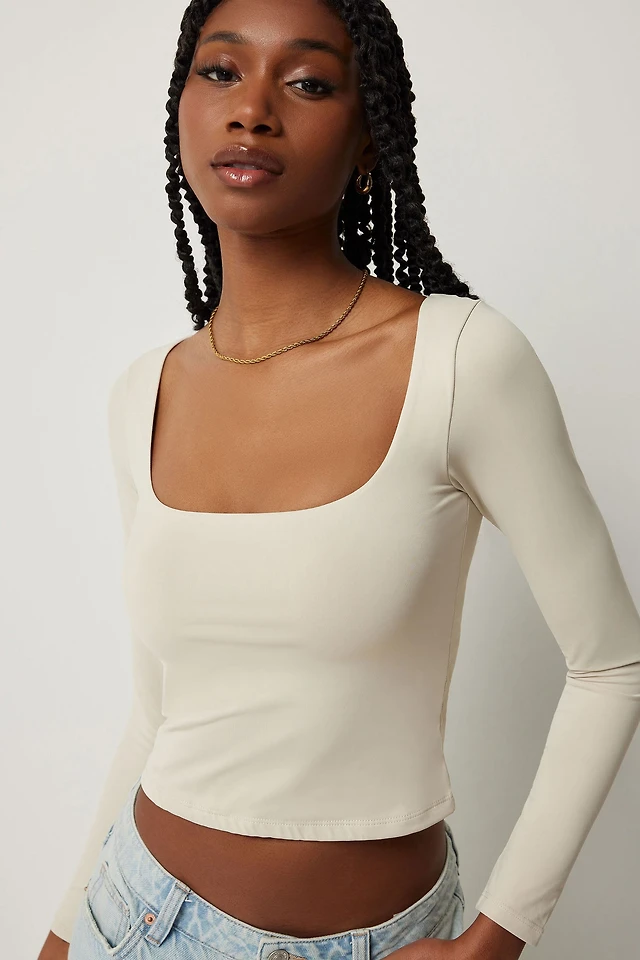 Ardene Contour Long Sleeve T-Shirt in Beige | Size | Elastane/Polyamide