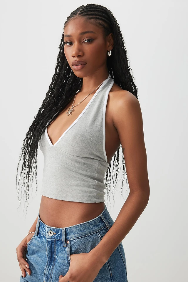 Ardene Contrast Trim Halter Tank Top in | Size | Cotton/Elastane
