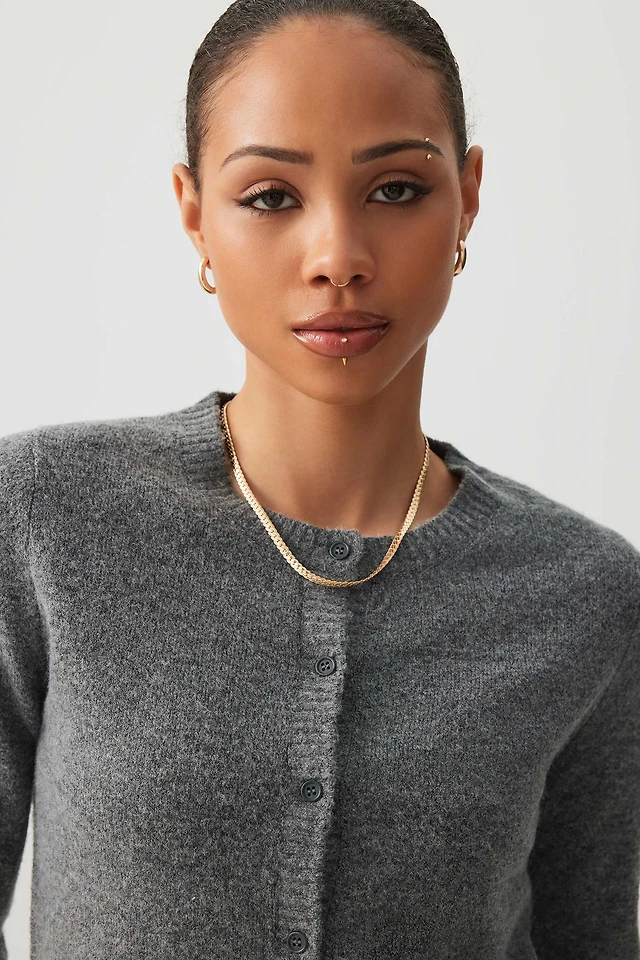 Ardene Crew Neck Cardigan in Dark Grey | Size | Polyester/Elastane | Eco-Conscious