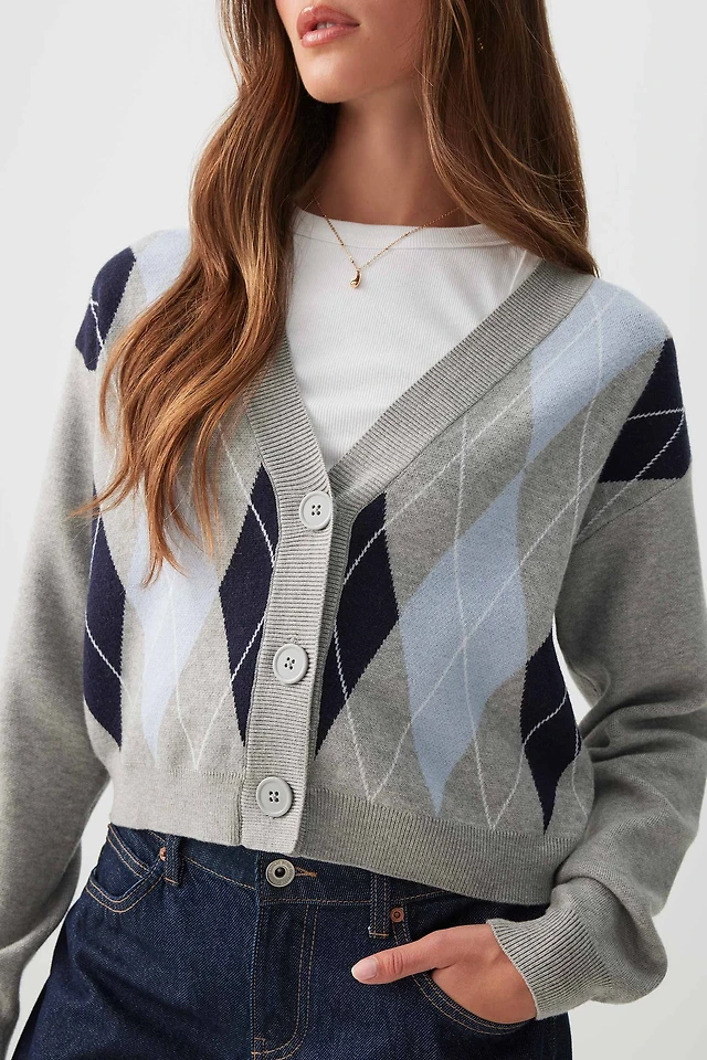 Ardene Crop V-Neck Cardigan in Grey | Size | Polyester/Nylon/Viscose