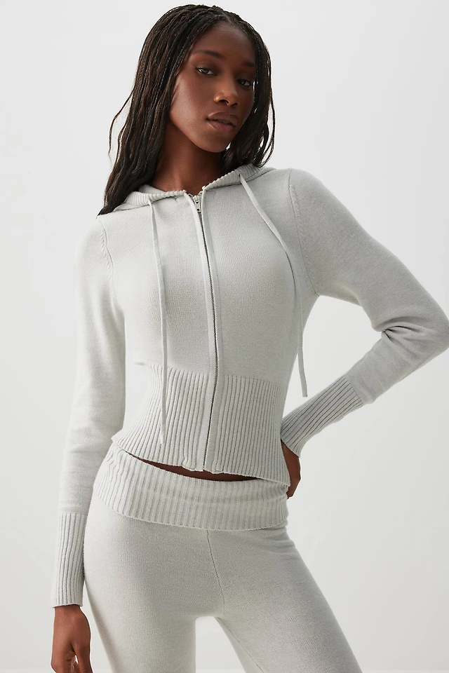Ardene Crop Zip Up Hooded Sweater in Light Grey | Size | Polyester/Nylon/Viscose