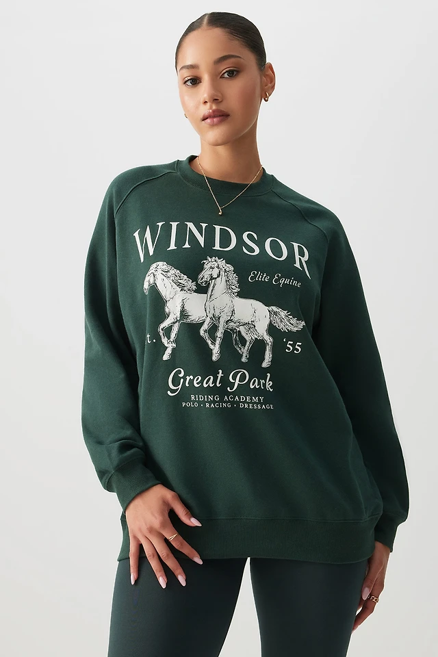 Ardene Destination Crew Neck Sweatshirt in Dark Green | Size | Polyester/Cotton | Fleece-Lined
