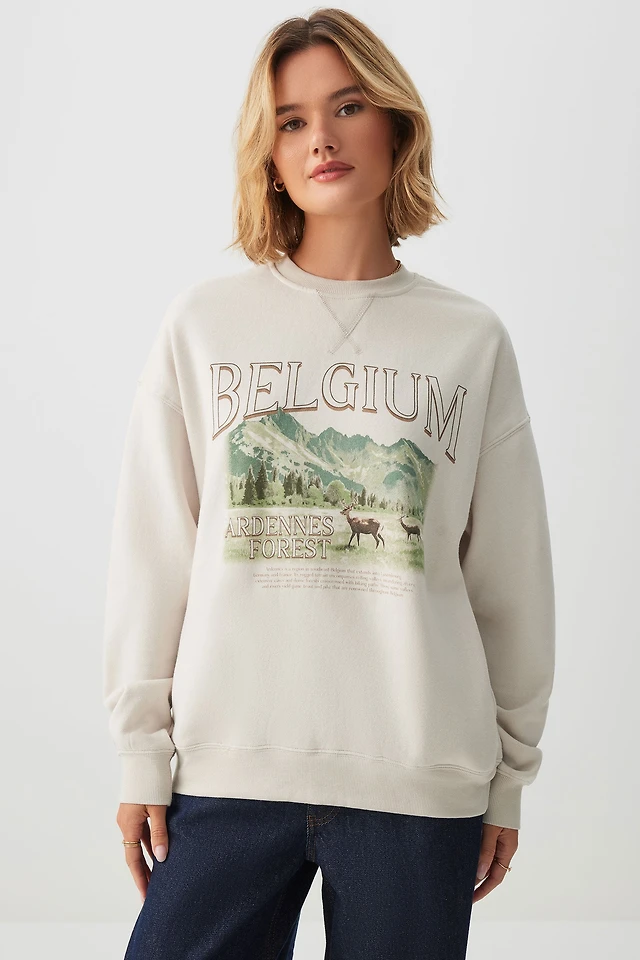 Ardene Destination Sweatshirt with Side Pockets in Beige | Size | Polyester/Cotton | Fleece-Lined