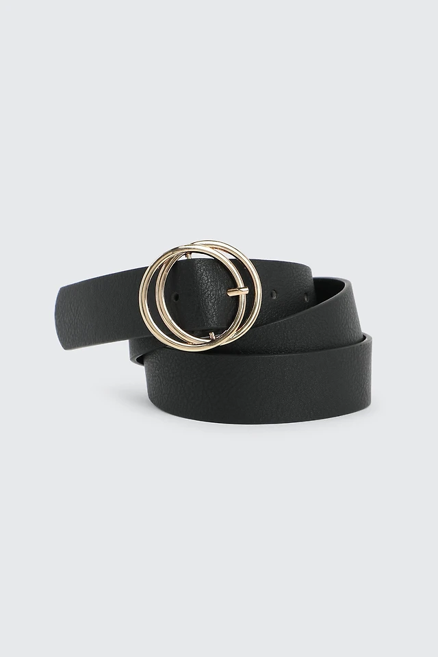 Ardene Double Circle Belt in Black | Size | Faux Leather