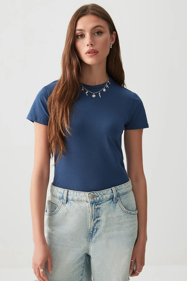 Ardene Effortless Everyday T-Shirt in Dark Blue | Size XS | Cotton/Elastane | Eco-Conscious