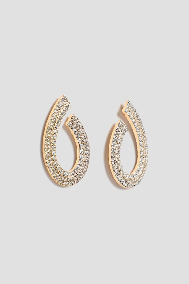 Ardene Embellished Curved Earrings in Gold | Stainless Steel