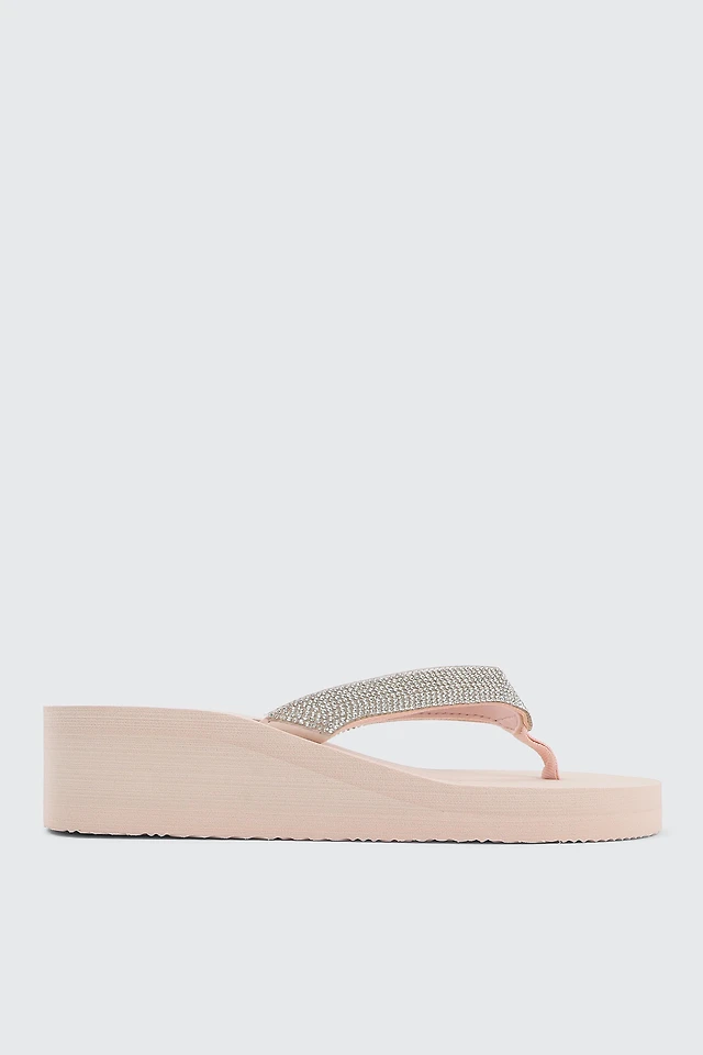 Ardene Embellished Wedge Flip-Flops Sandals in Light Pink | Size