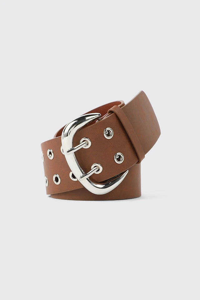 Ardene Eyelet Belt in Brown | Size Small | Faux Leather