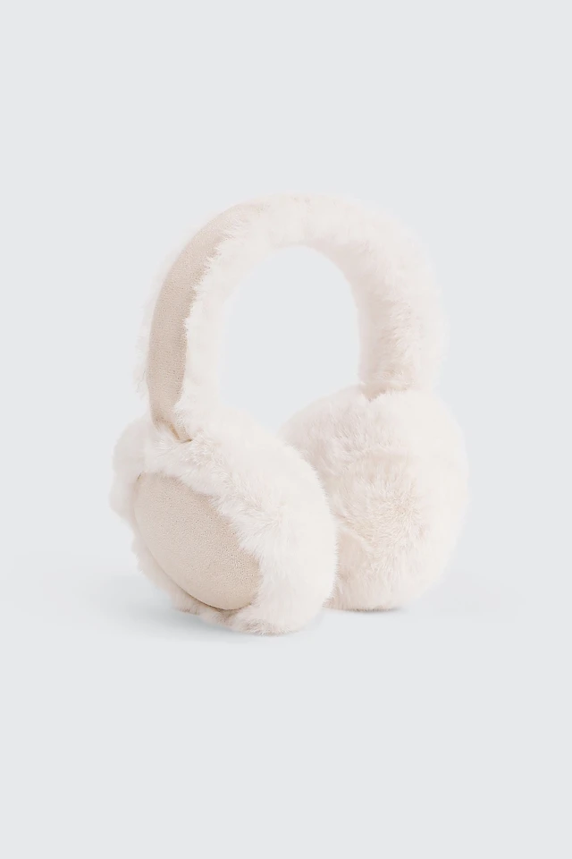 Ardene Faux Fur Earmuffs in Beige | Polyester/Faux Suede