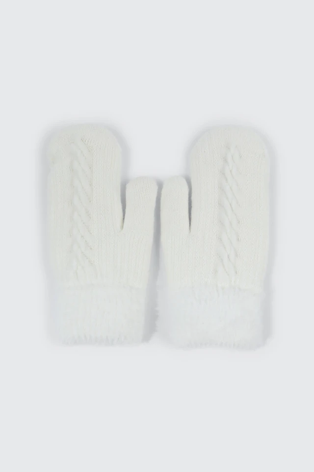 Ardene Faux Fur Lined Knit Mittens in Off-White | 100% Acrylic