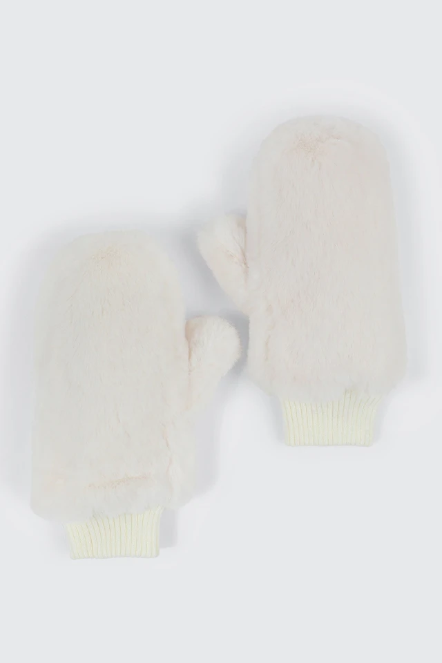 Ardene Faux Fur Mittens in Off-White | Polyester
