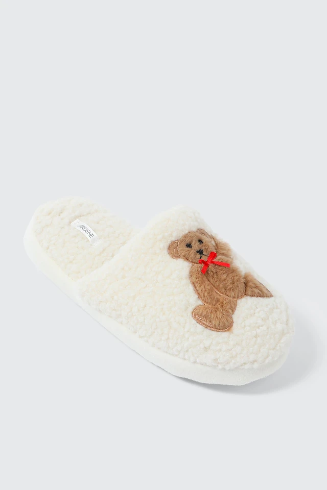 Ardene Faux Fur Slippers with Animal Detail in Off-White | Size | Eco-Conscious