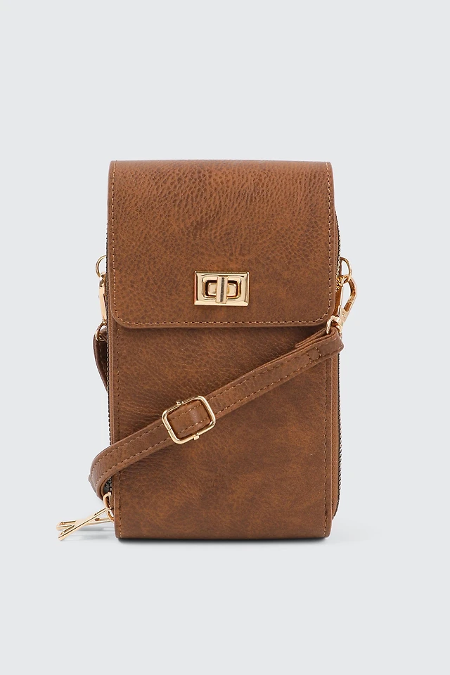 Ardene Faux Leather Phone Bag in Cognac | 100% Recycled Polyester/Faux Leather | Eco-Conscious