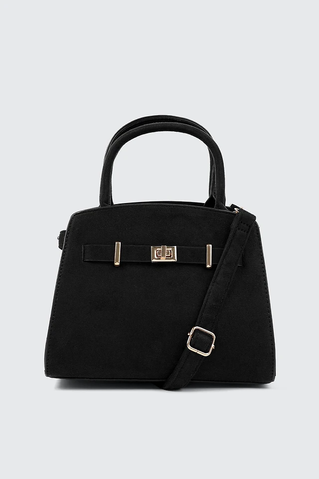Ardene Faux Suede Structured Handbag in Black | 100% Recycled Polyester/Faux Suede | Eco-Conscious
