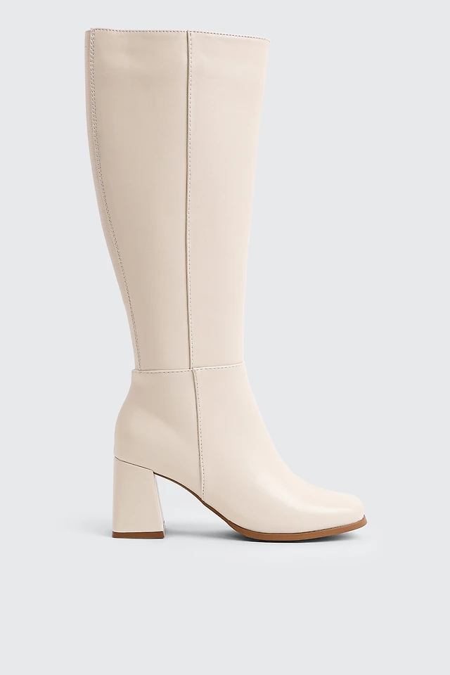 Ardene Flare Block Heel Knee High Boots in Off-White | Size | Faux Leather/Faux Suede | Eco-Conscious