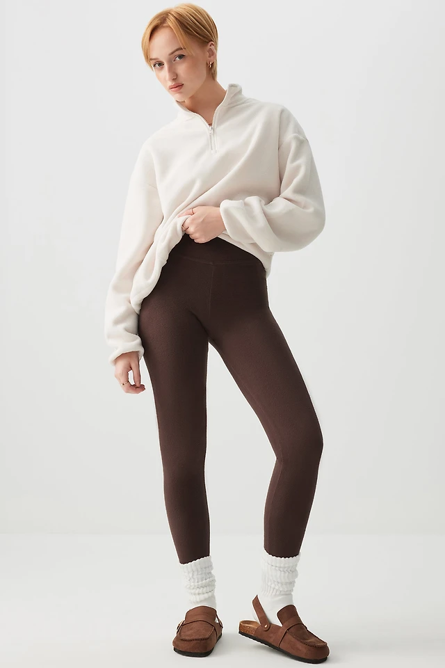 Ardene Fleece Lined Leggings in Brown | Size | Polyester/Elastane | Fleece-Lined