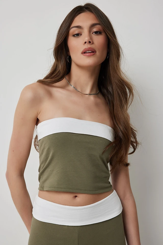 Ardene Foldover Tube Top in Khaki | Size | Spandex/Cotton