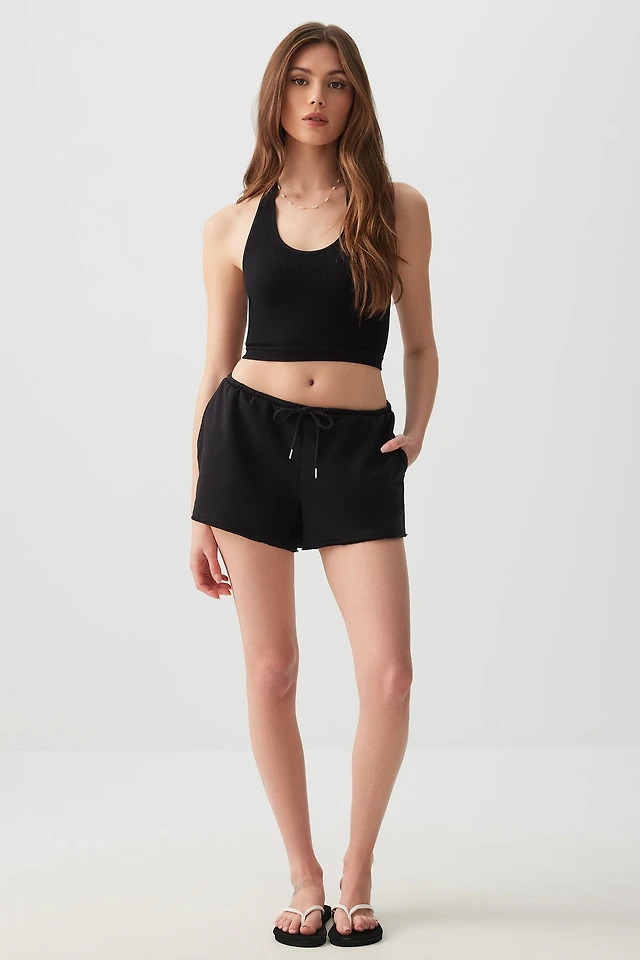 Ardene French Terry Shorts in Black | Size Large | Polyester/Cotton/Elastane