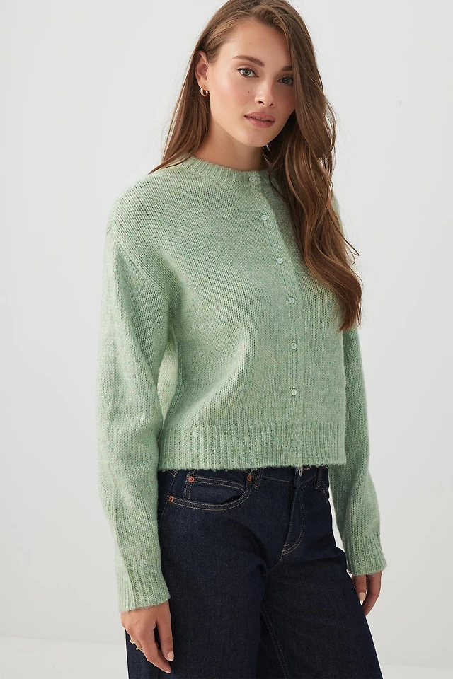 Ardene Fuzzy Knit Cardigan in Light Green | Size | Polyester