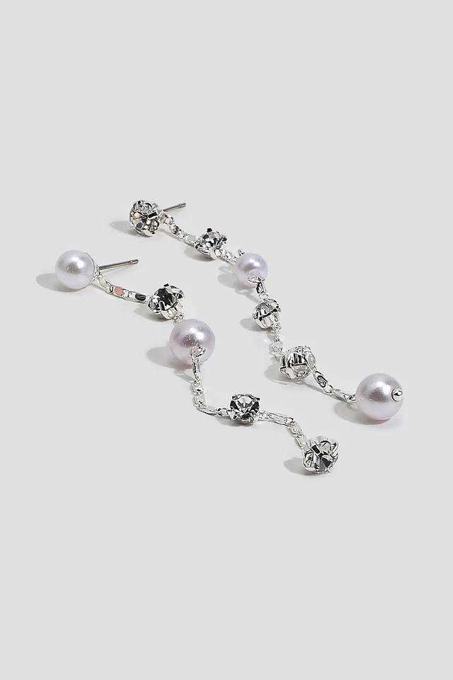 Ardene Gemstone & Pearl Drop Earrings in Silver | Stainless Steel
