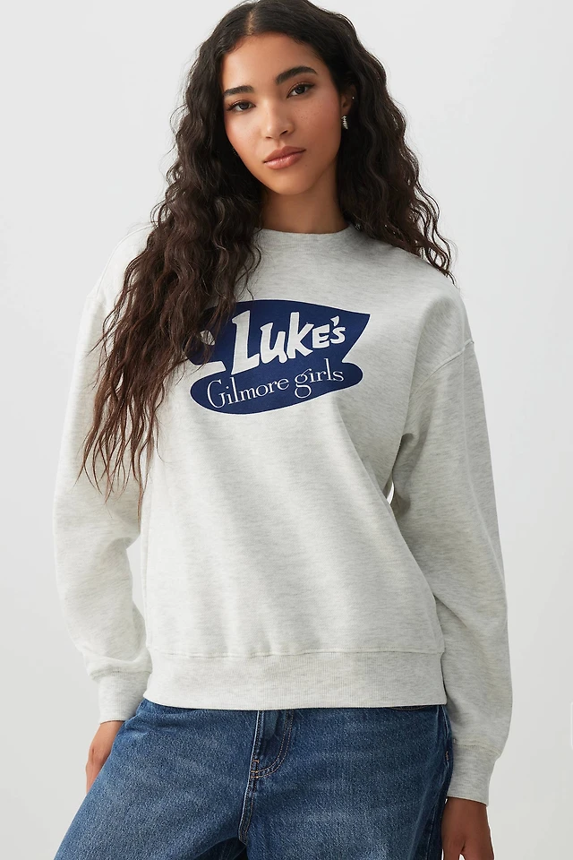 Ardene Gilmore Girls Sweatshirt in Light Grey | Size Medium | Polyester/Cotton/Elastane | Fleece-Lined
