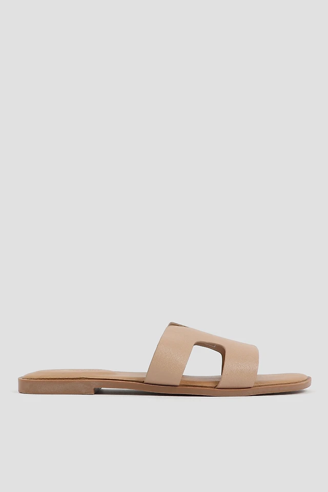 Ardene H-Strap Sandals in Beige | Size 9 | Faux Leather | Eco-Conscious