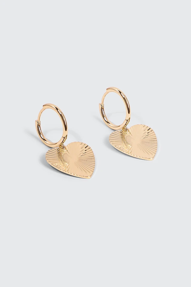 Ardene Heart Charm Hoop Earrings in Gold | Stainless Steel