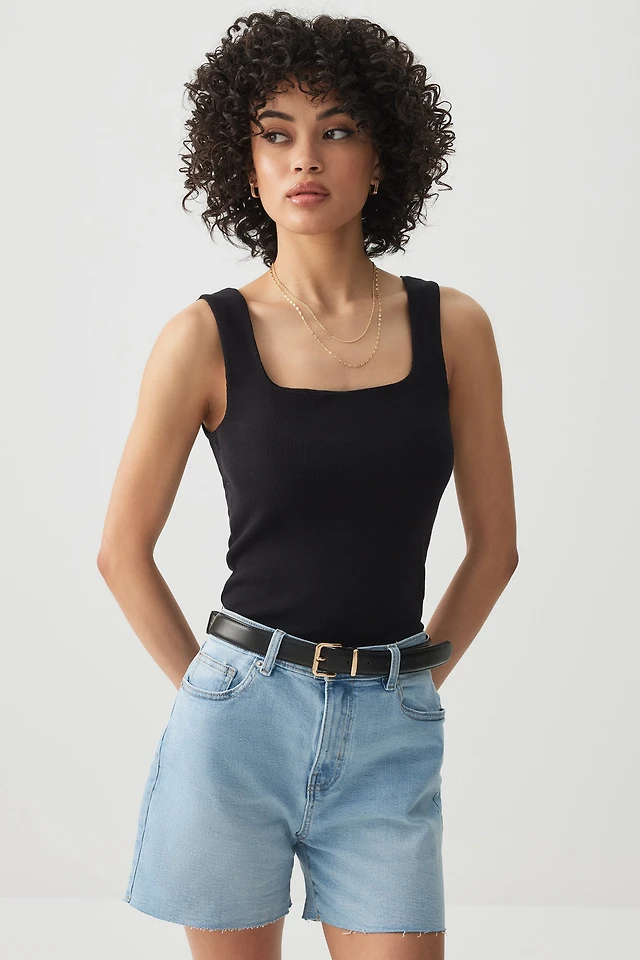 Ardene High Rise Midi Denim Shorts in Light Blue | Size | Cotton/Elastane