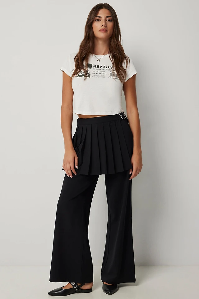 Ardene High Rise Trousers with Mini Skirt in Black | Size Small | Polyester/Elastane/Viscose
