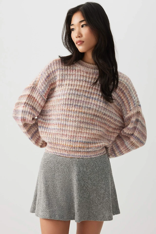 Ardene Irregular Striped Sweater in Medium Pink | Size Large | Polyester