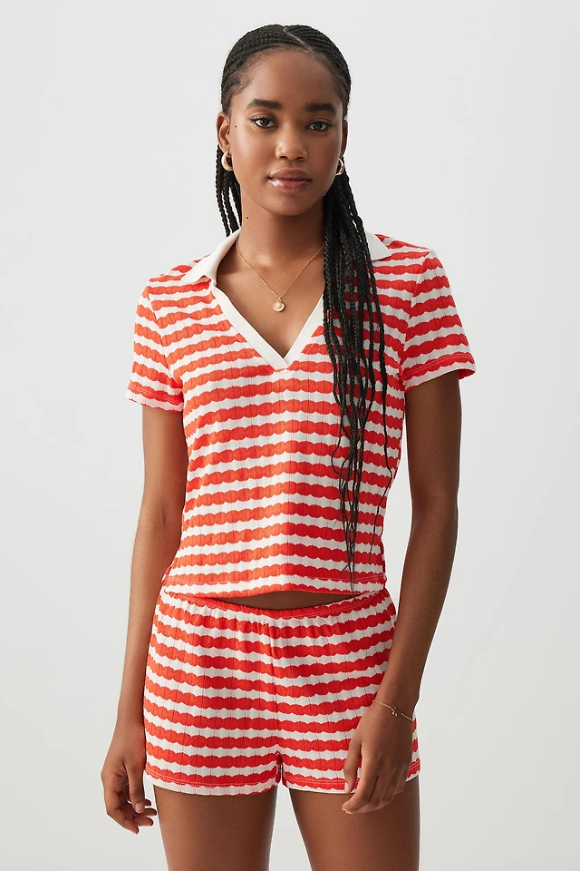 Ardene Jacquard Striped Polo in Red | Size | Polyester