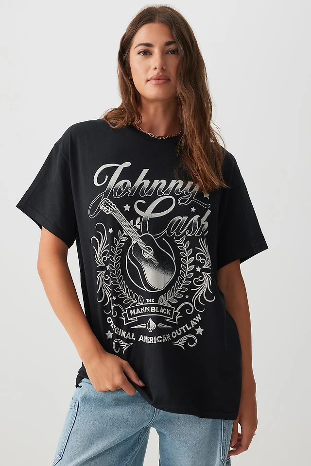 Ardene Johnny Cash Graphic T-Shirt in Black | Size | 100% Cotton