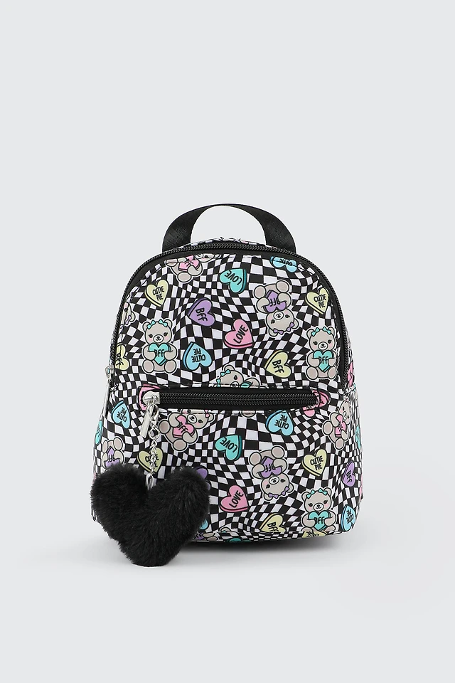 Ardene Kids Backpack with Heart Keychain in Black | 100% Recycled Polyester | Eco-Conscious