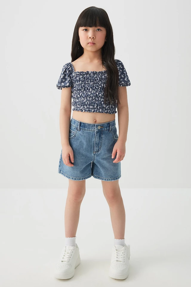 Ardene Kids Denim Midi Shorts in Medium Blue | Size | Polyester/Rayon/Cotton