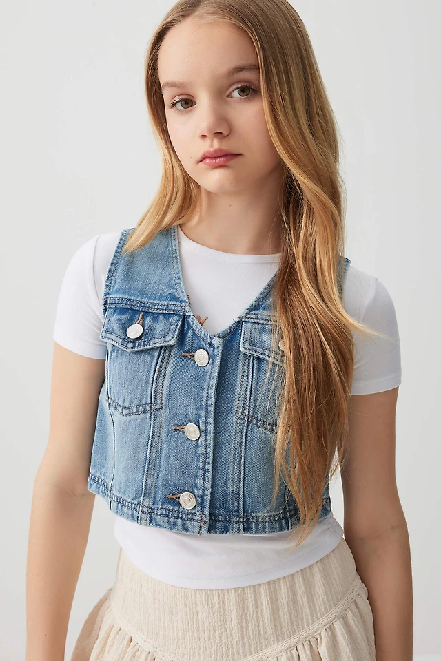 Ardene Kids Denim Vest in Medium Blue | Size | Polyester/Rayon/Cotton