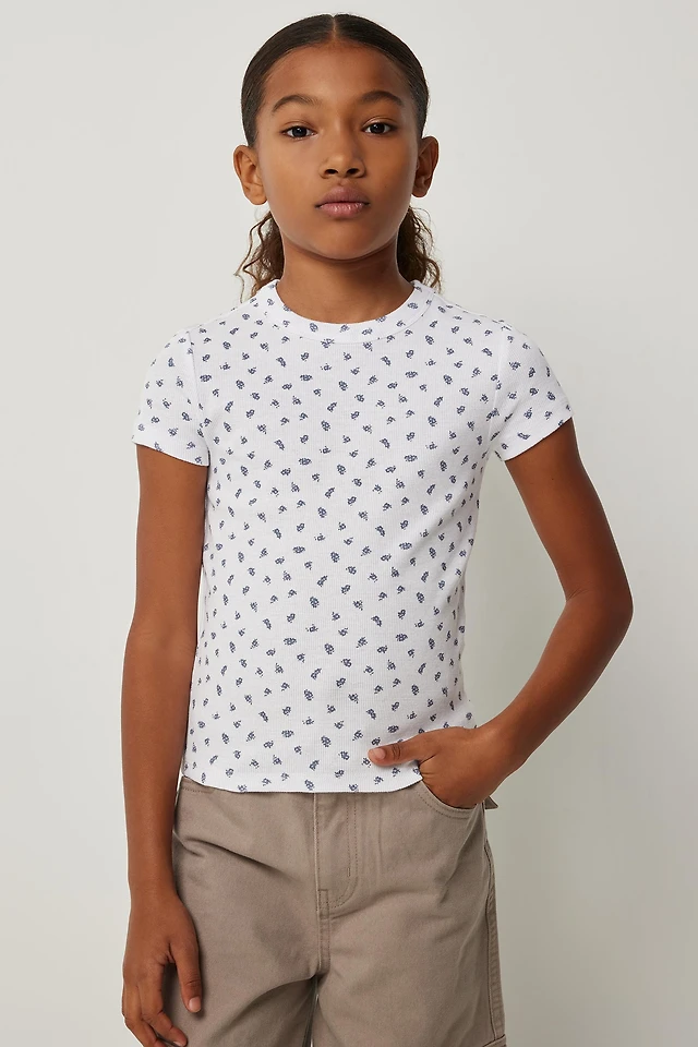 Ardene Kids Floral Fitted Crew Neck T-Shirt in Dark Blue | Size | Spandex/Cotton