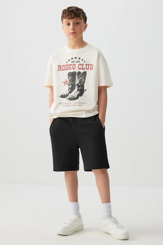 Ardene Kids French Terry Bermuda Shorts in Black | Size Small | Polyester/Cotton | Eco-Conscious