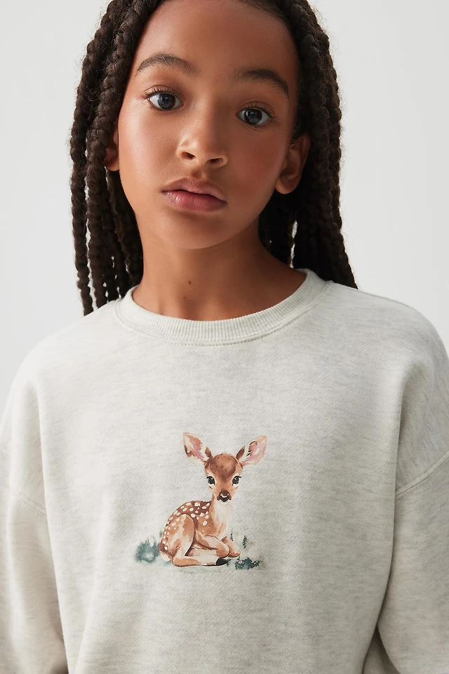 Ardene Kids Graphic Crew Neck Sweatshirt in Beige | Size | Polyester/Cotton | Fleece-Lined