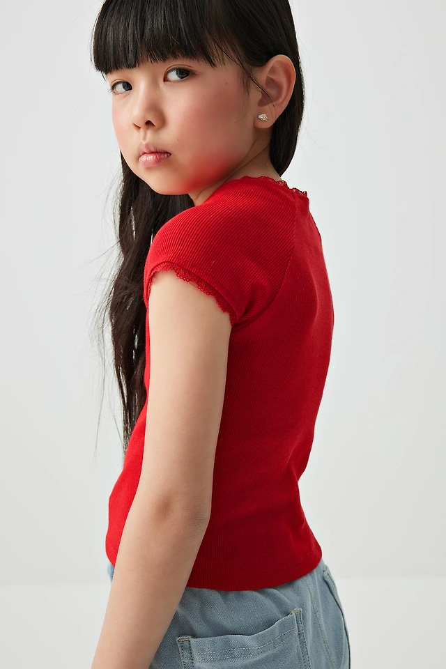 Ardene Kids Lace Trim Fitted T-Shirt in Red | Size | Spandex/Cotton